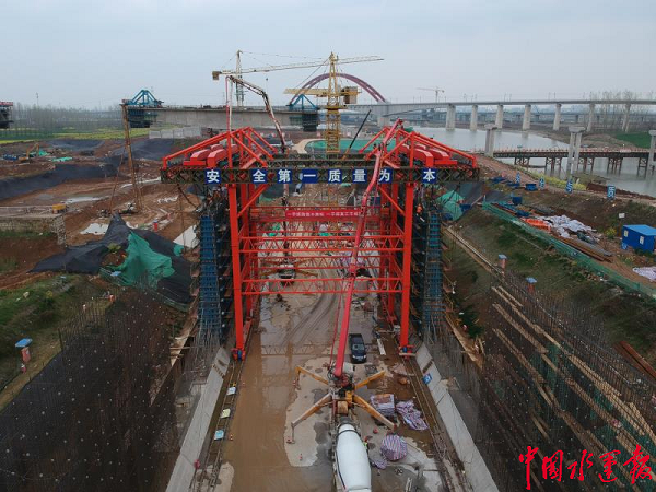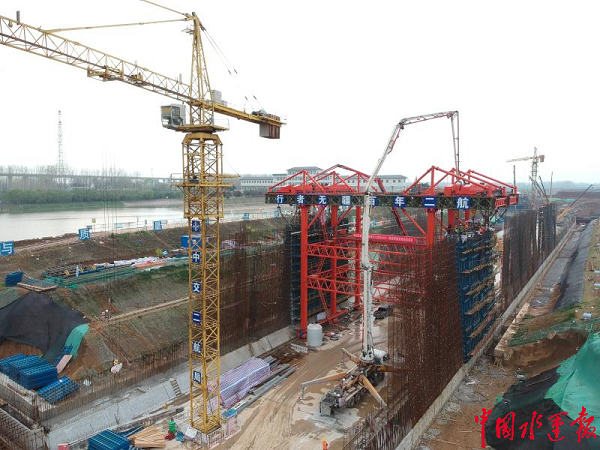 引江濟(jì)淮東淝河船閘工程開始閘室墻澆筑